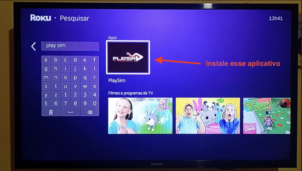 Abra a loja de aplicativos da sua tv e pesquise por playsim